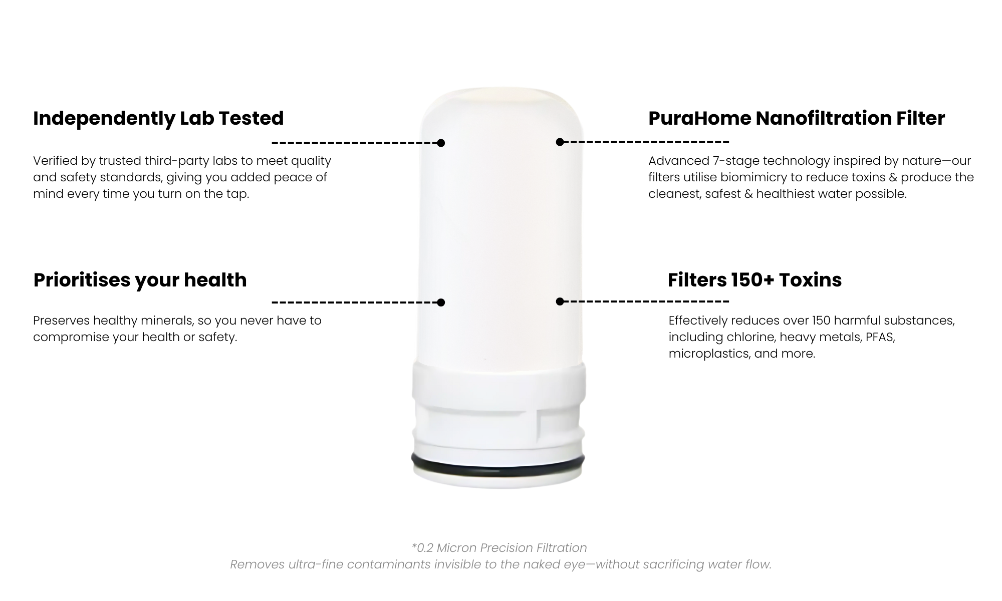 Advanced filtration that targets the invisible threats hiding in your tap water, for the health and safety of your whole family.